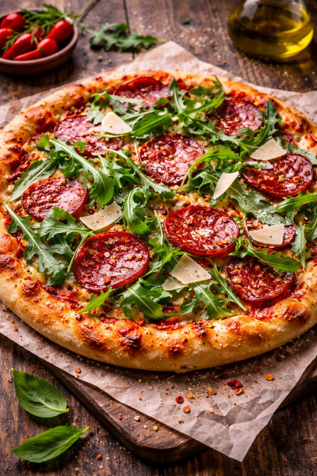 mit scharfer Salami, Rucola und Parmesan