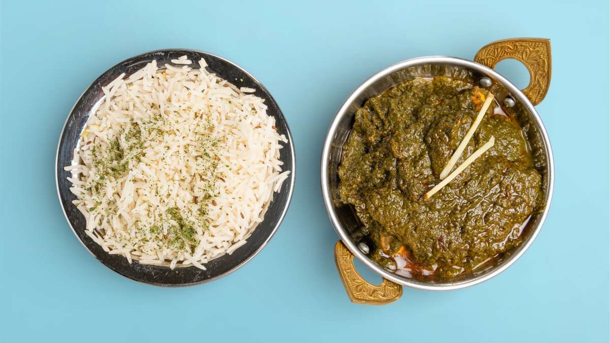 alle Gerichte werden mit Hähnchenhackfleisch und Curry-Sahnesoße zubereitet („Saag Keema” wird ohne Curry-Sahnesoße zubereitet)