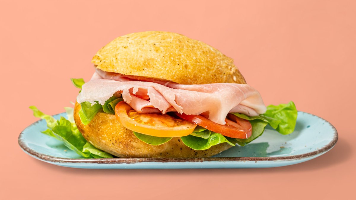 mit gekochtem Schinken, Salat und Tomaten