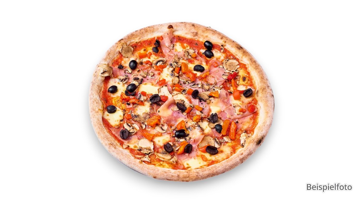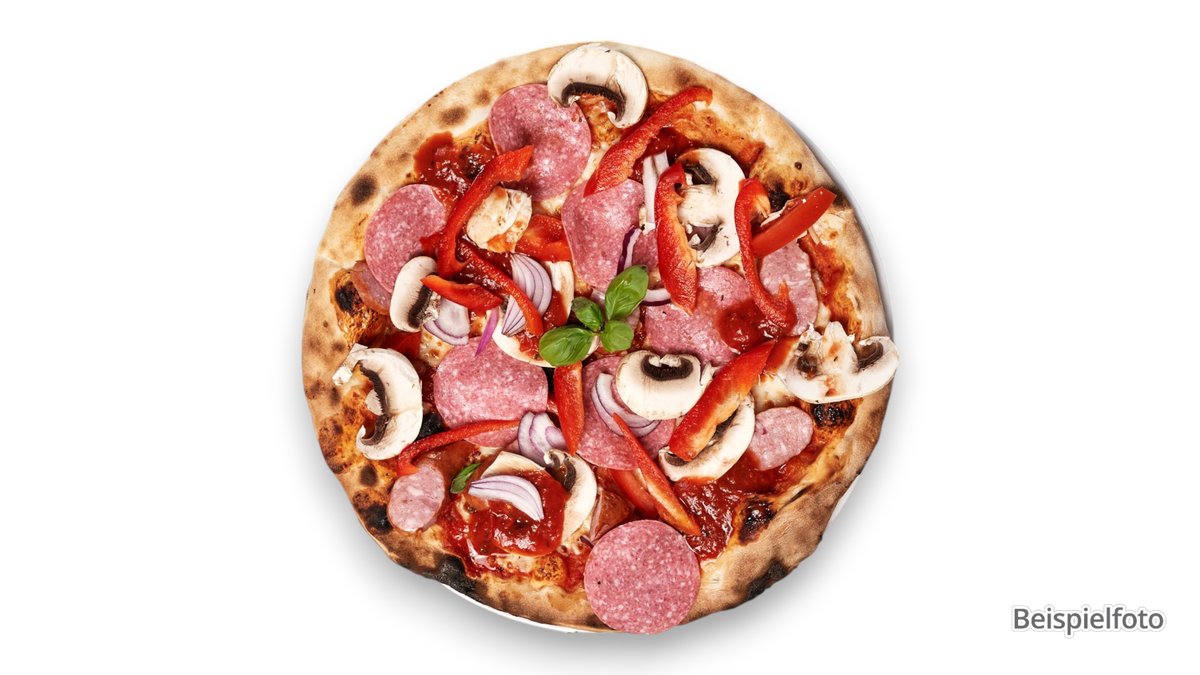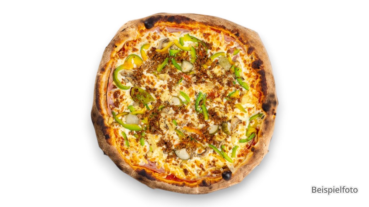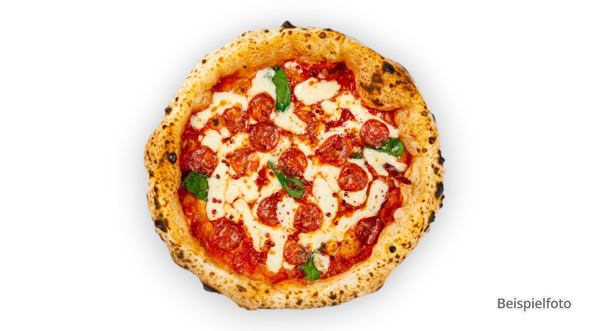 alle Pizzen sind ca. 29 x 29 cm groß, jede Pizza wird mit Tomatensauce, Käse und Oregano zubereitet