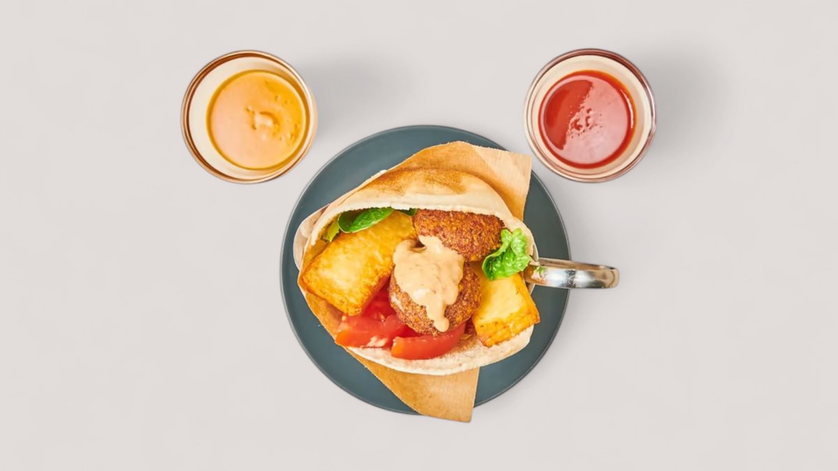 5 Stück mit Falafel, Salat, Hummus und sauren Gurken
