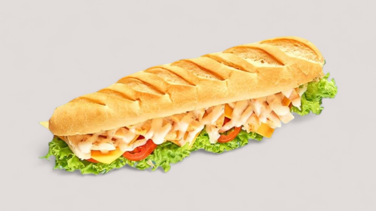 mit gegrilltem Hähnchen, Salat, Käse, Mais, Champignons, Paprika und Cocktailsoße