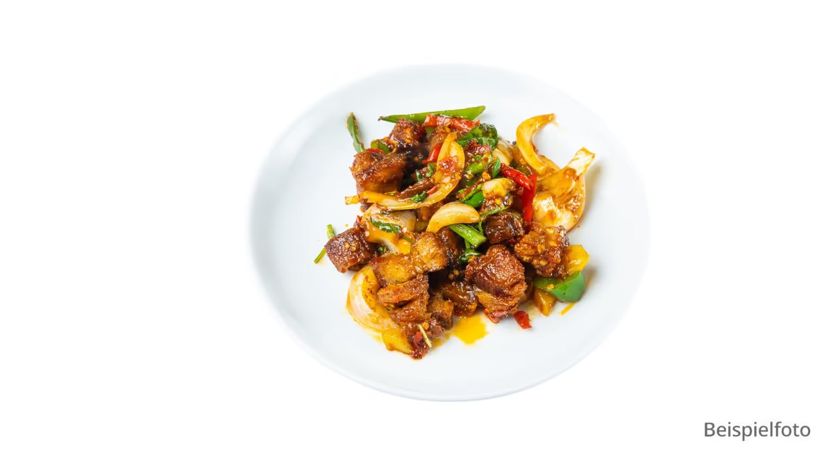 argentinisches Rindfleisch, kurz im Wok geschwenkt mit Süßkartoffeln, buntem Salat und hausgemachter Teriyaki-Soße