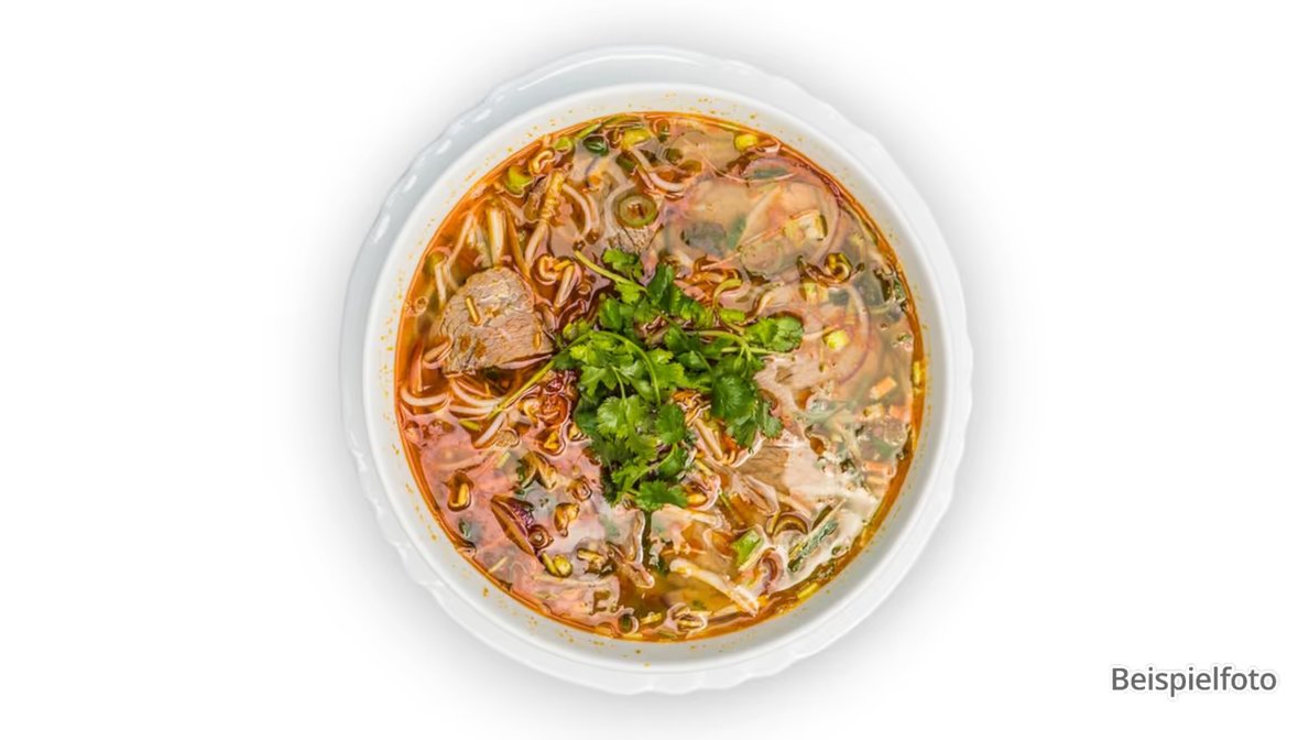 würzige Rindfleisch-Nudelsuppe mit Zitronengras und einer perfekten Balance aus salzig, scharf und umami, dazu Rindrippe und „Cha Hue"-hausgemachte speziale Röhrchen