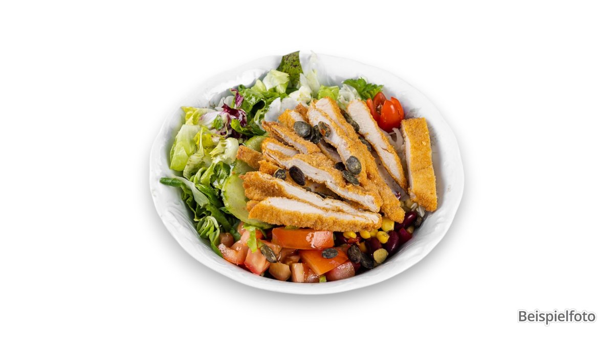 alle Salate werden mit Eisbergsalat, Gurken, Tomaten, einem Dressing und in einer Größe deiner Wahl serviert
