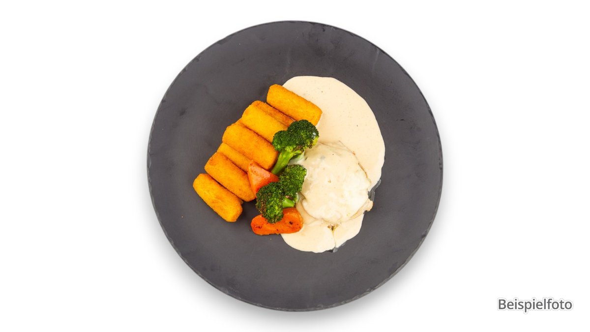 mit Hähnchen, Mais, Brokkoli und Sauce hollandaise