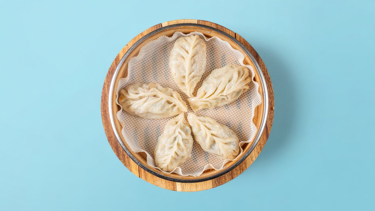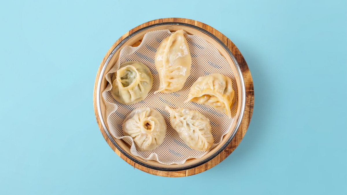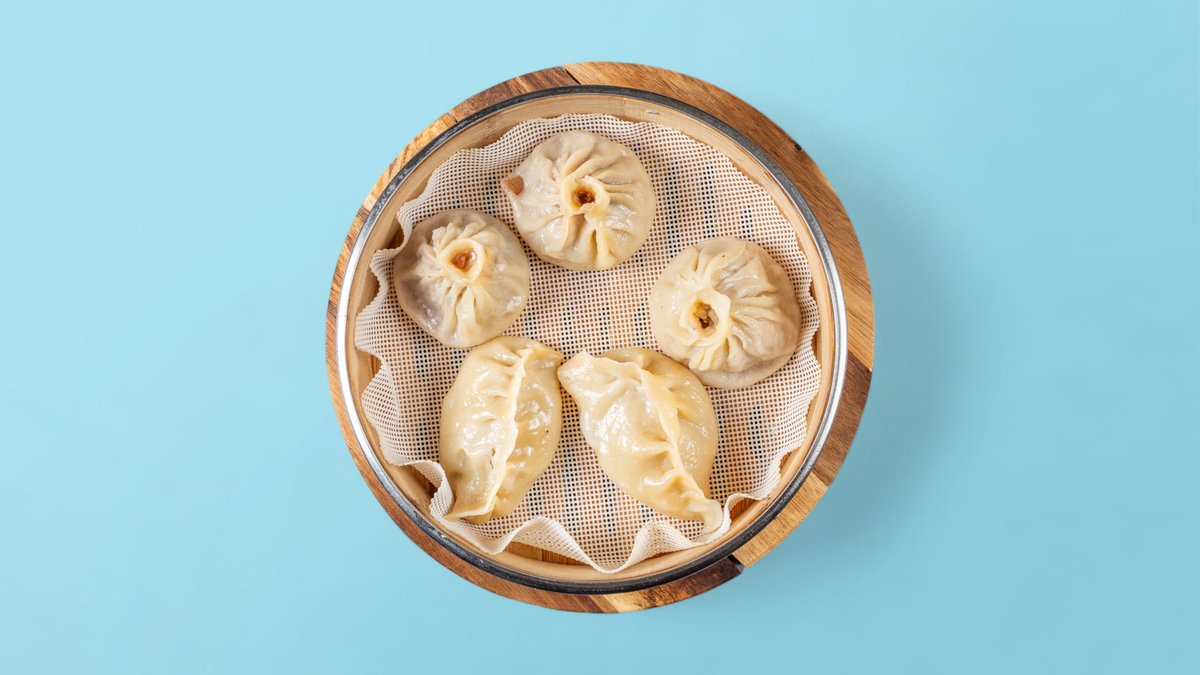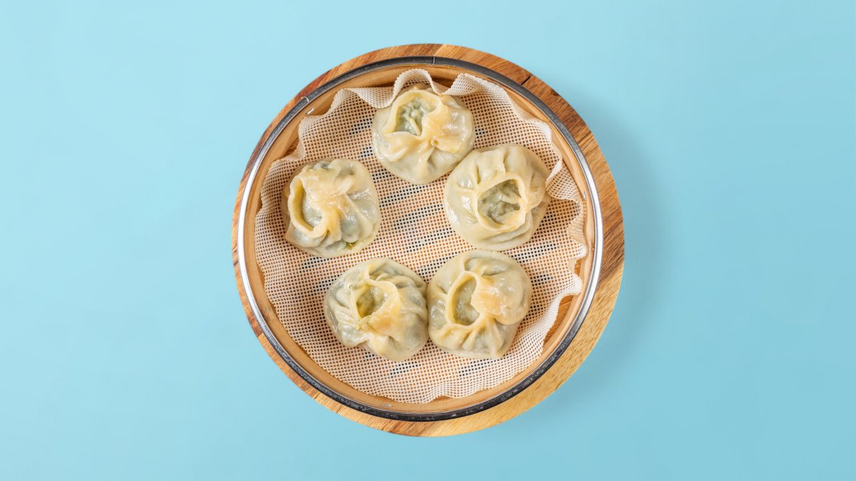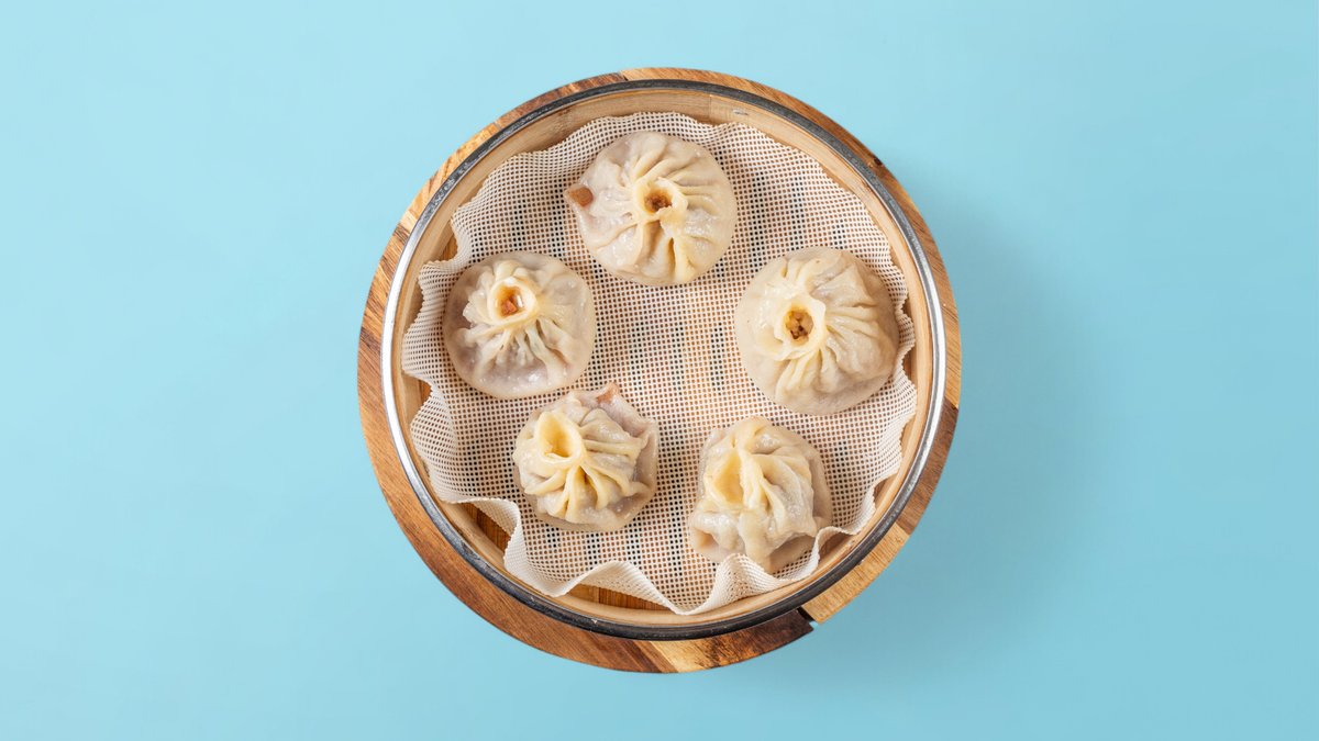 Handgewolftes Halal-Rindfleisch mit Zwiebeln und Frühlingszwiebeln, in handgerolltem Weizenteig gedämpft.