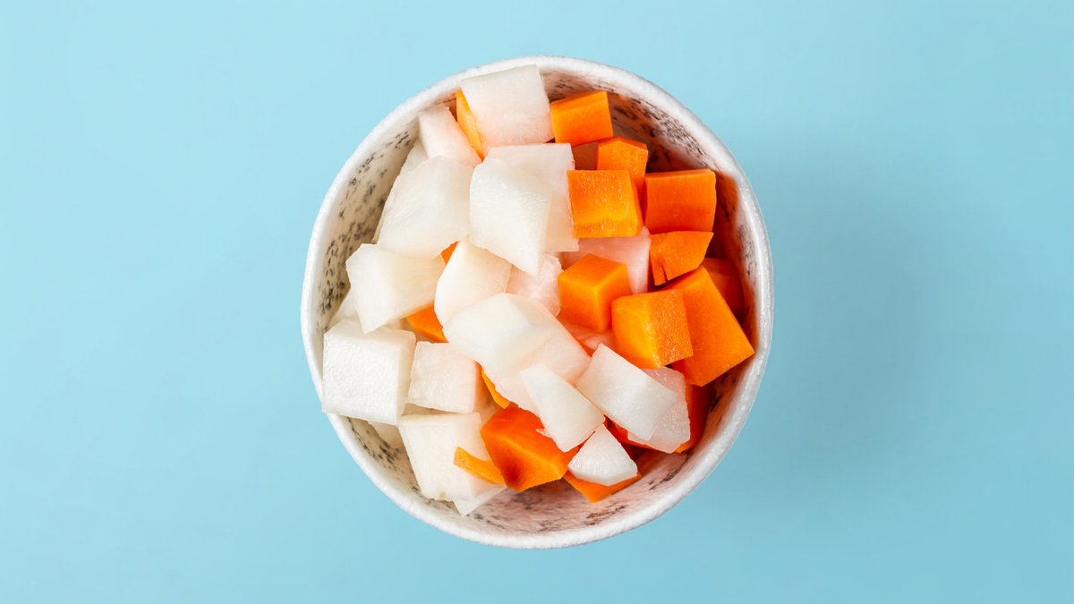 Karotten und Rettich leicht fermentiert mit weißem Essig, Zucker und Sichuan-Pfeffer