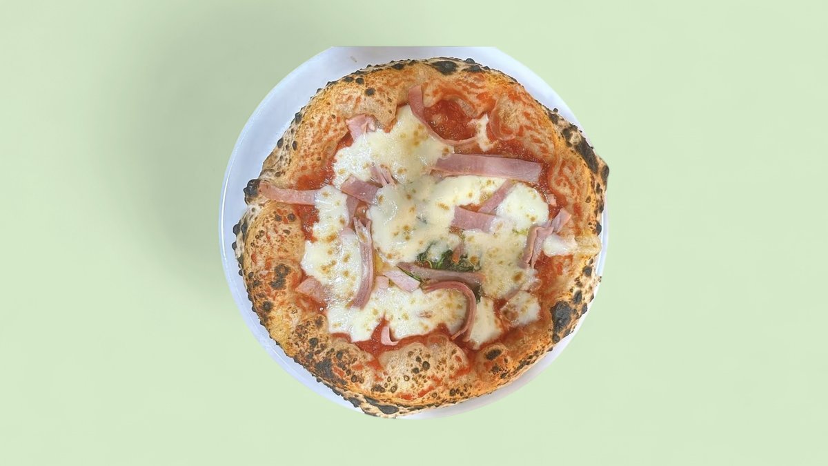 Ricotta, San Marzano Tomatensauce, Fior Latte Mozzarella, Basilikum, Parmesan, Kochschinken Olivenöl