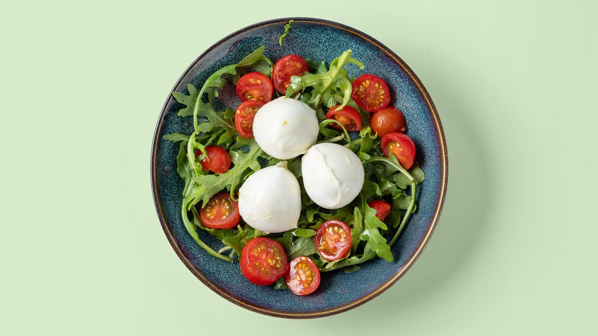 mit Basilikum, Büffelmozzarella aus Italien, Kirschtomaten und Rucola