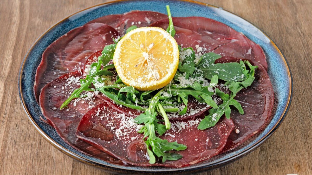 mit Bresaola aus Black Angus Rindfleisch, Parmesan, Olivenöl, Rucola und Zitronen