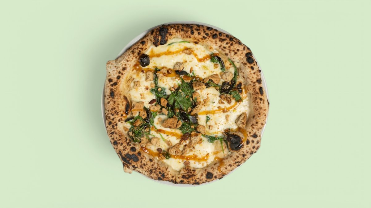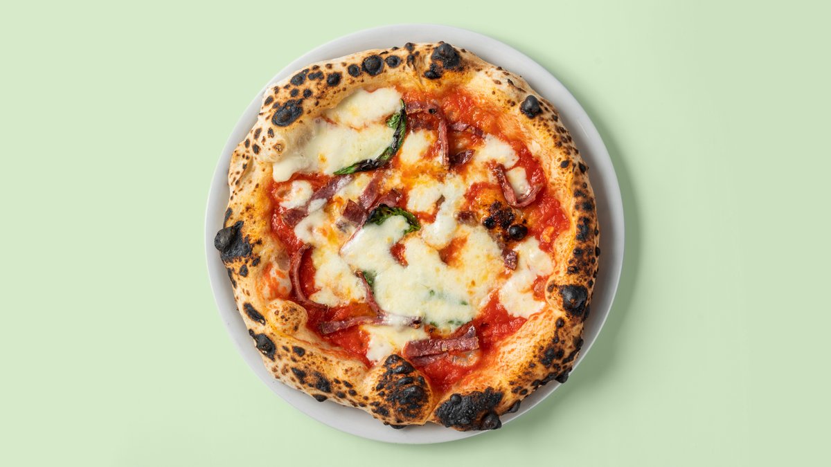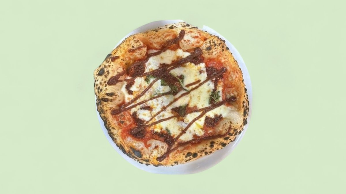 scharf mit San Marzano Tomatensoße, Parmesan, Fior di Latte Mozzarella, Nduja aus Schweinefleisch, karamellisierten Zwiebeln und Olivenöl