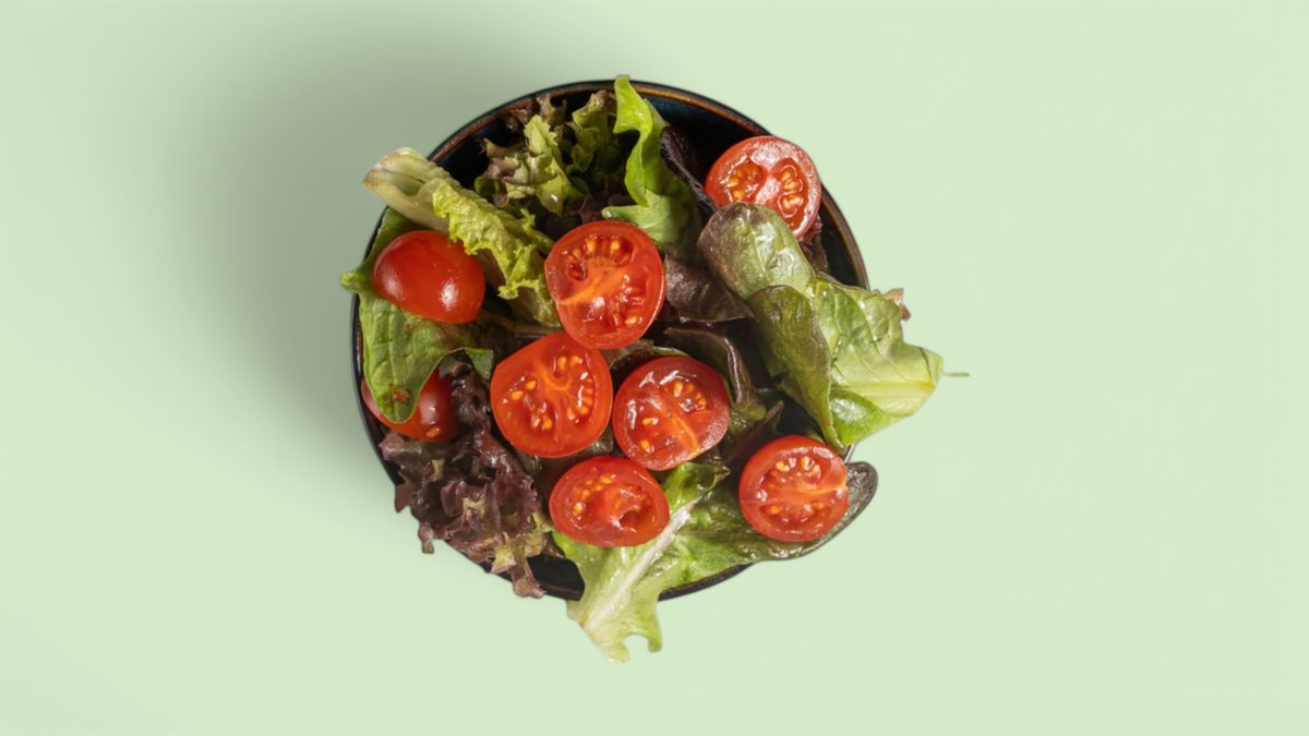 mit gemischtem Salat, Kirschtomaten und Olivenöl