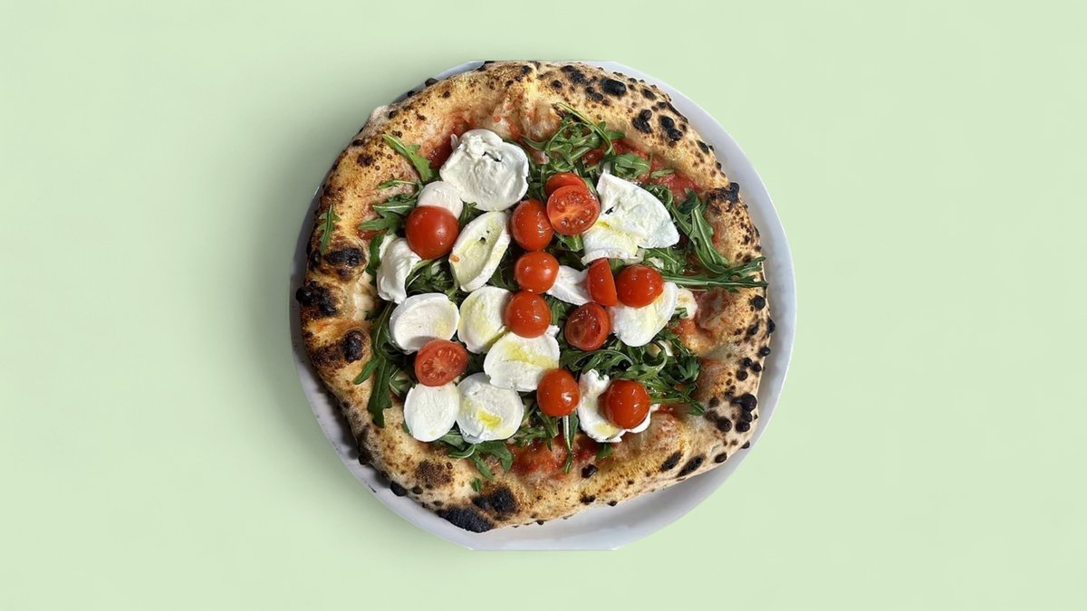 alle Pizzen werden mit Fior di Latte Mozzarella, Parmesan, Basilikum und Olivenöl zubereitet („Pizza Bresaola” wird ohne Olivenöl zubereitet)