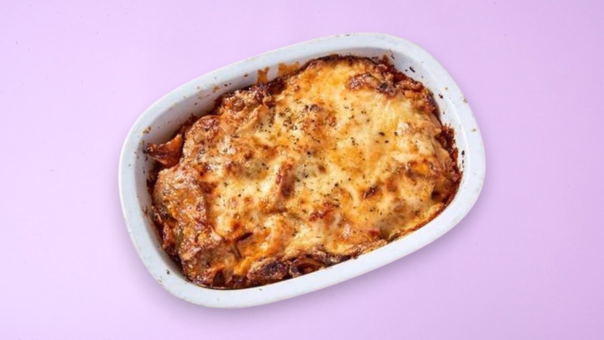 mit Tomaten, Paprika, Zwiebeln in Cocktailsoße und Käse überbacken, dazu Salat