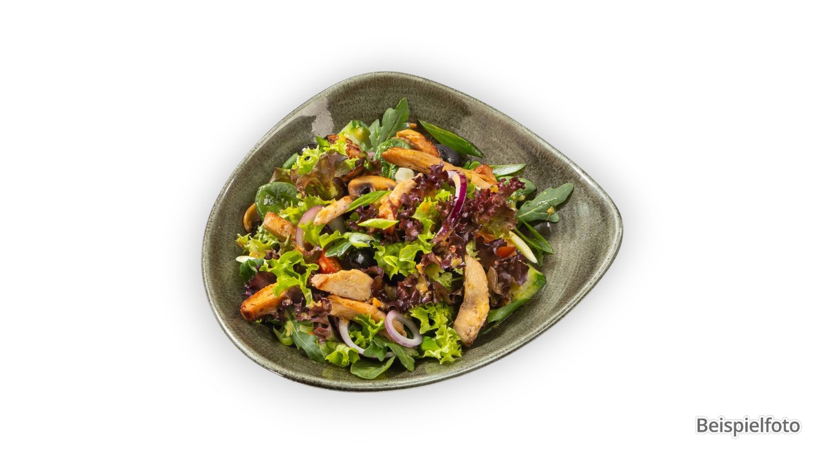 großer bunter Salat mit gebratenen Hähnchenbrustfilet
