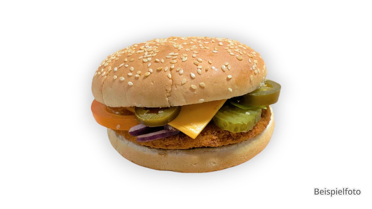 alle Burger werden mit einem 150 g Patty, Salat, Tomaten und Gewürzgurken zubereitet („Veggie Burger“ wird ohne Salat, Tomaten und Gewürzgurken zubereitet)
