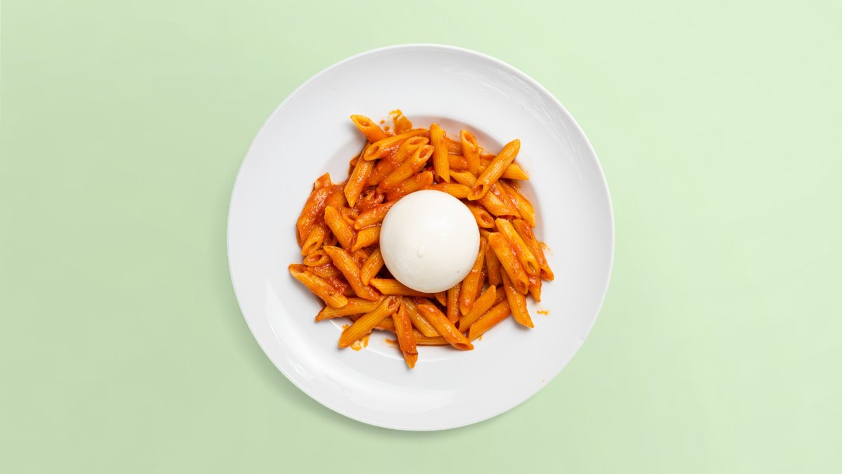 mit Tomatensoße, Knoblauch, Chili, Basilikum und Burrata