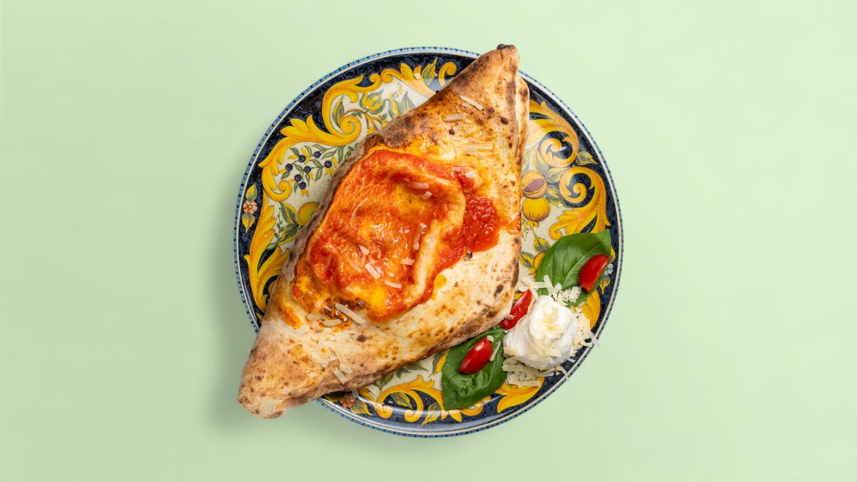 knuspriger, zusammengeklappter Pizzateig mit einer Zutat deiner Wahl