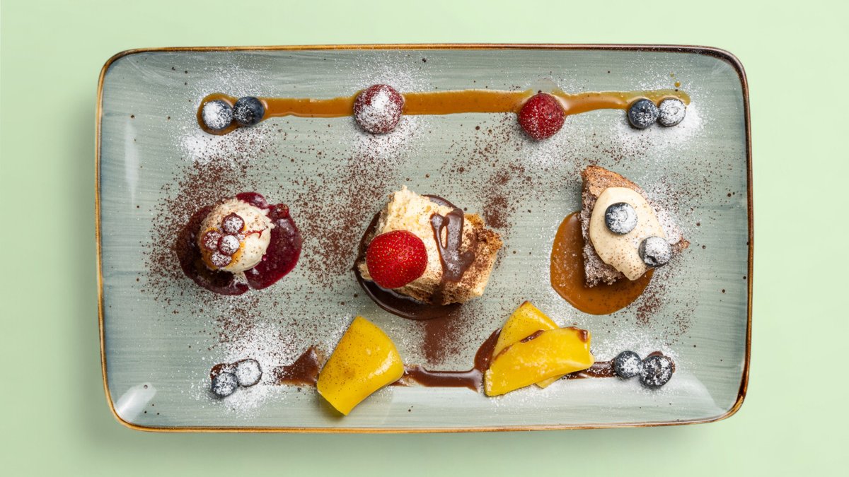 Schokoladenkuchen mit einer Zutat deiner Wahl Das Gericht wurde mit Schokolade zubereitet und kann Spuren von verschiedenen Nüssen enthalten
