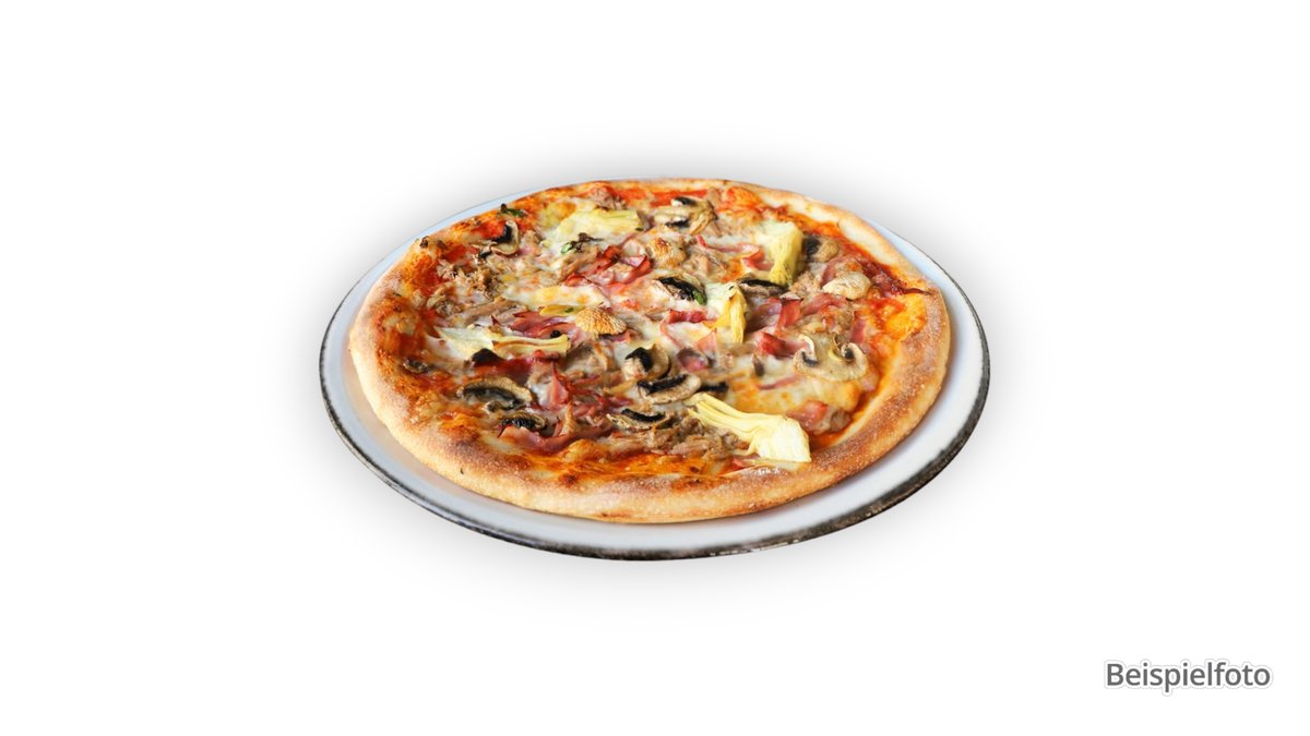 alle Pizzen werden mit Tomatensoße, Käse und Oregano zubereitet und in einer Größe deiner Wahl serviert