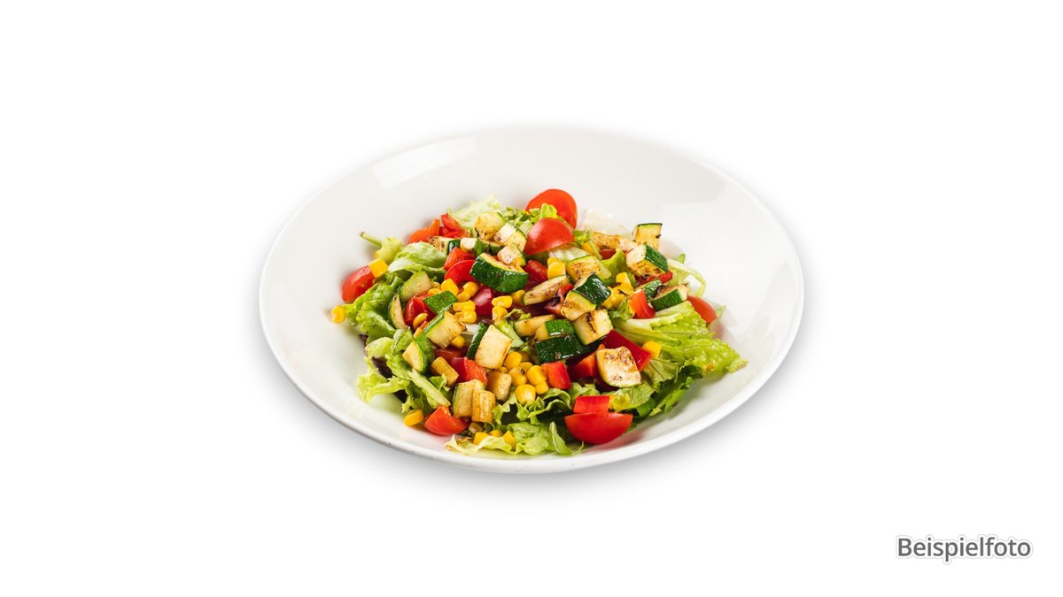 alle Gerichte werden mit Joghurt-Dressing zubereitet („32. Green Avocado Garden Salat”, „35. Shirazi Salat” und „36. Coleslaw” werden ohne Joghurt-Dressing zubereitet)