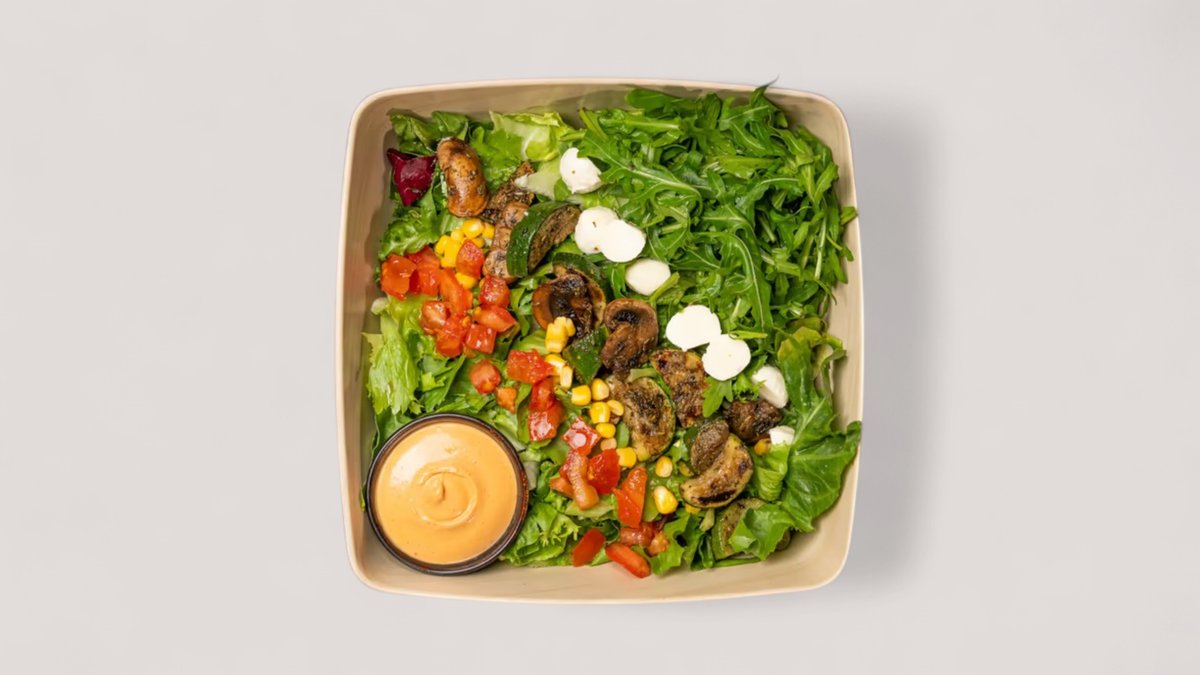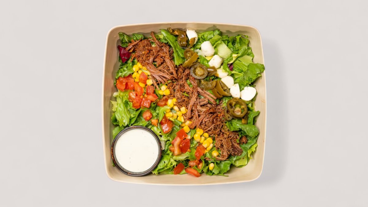 Beef Salat oder Bowl mit Mozzarella, Jalapenos und French-Herbs-Sauce