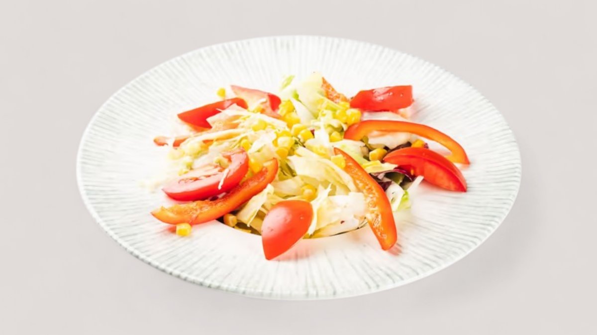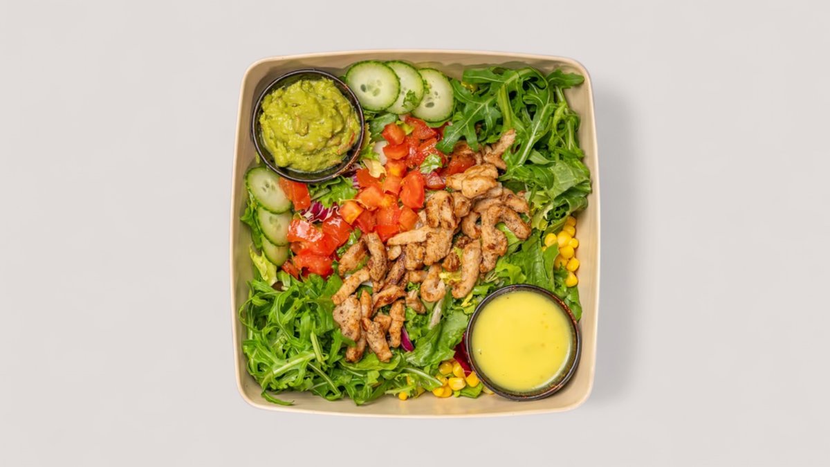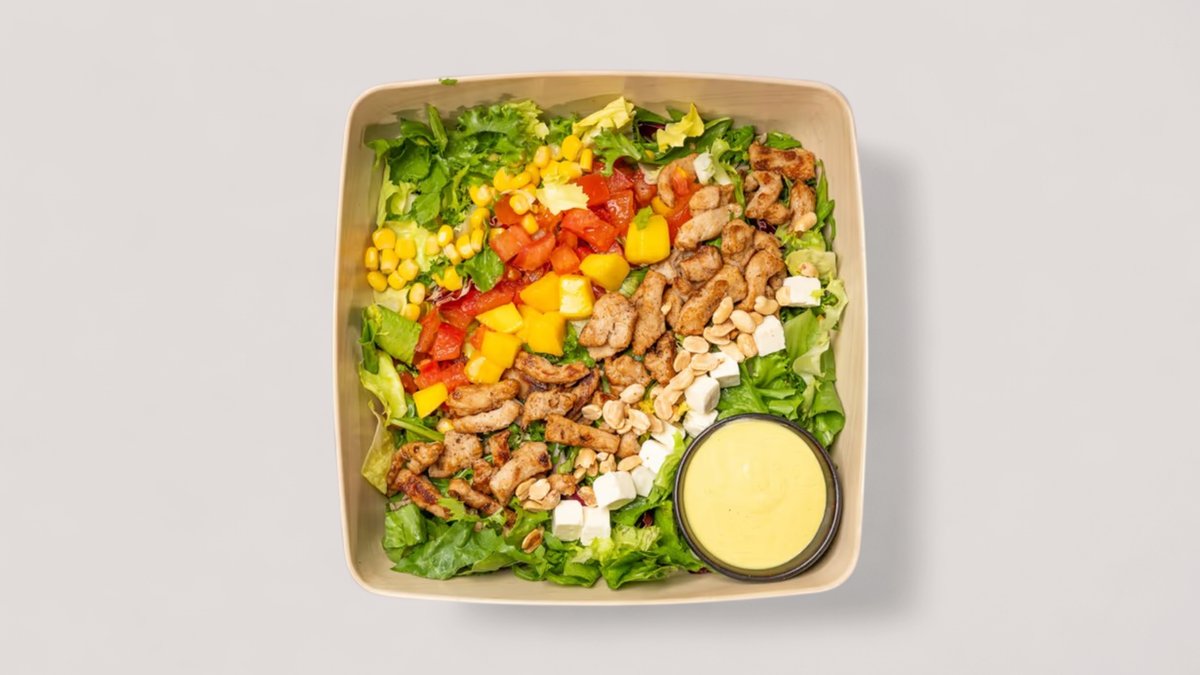 alle Salate werden mit einer Basis aus Salatmix, Tomaten und Mais zubereitet,