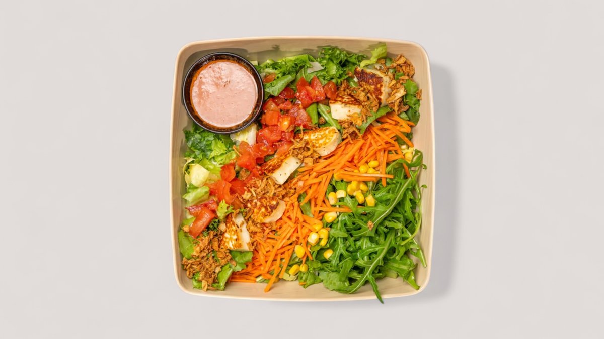 mit Halloumi, Karotten, Tortilla-Crumble und White-Smoked-Soße