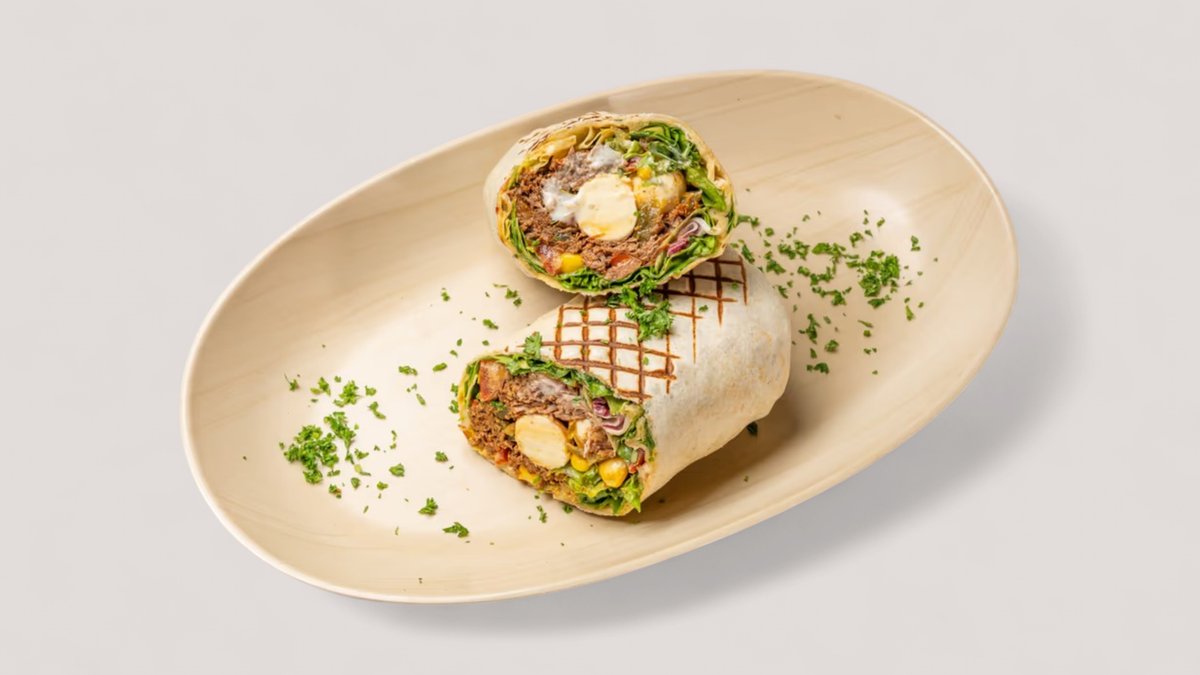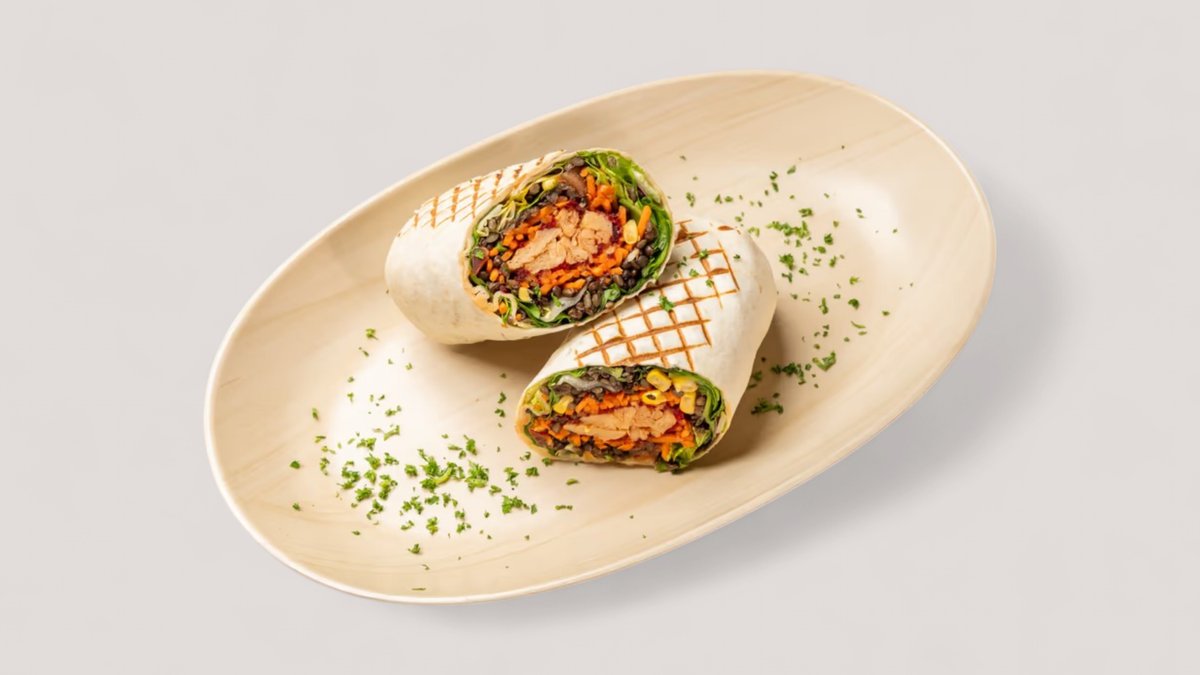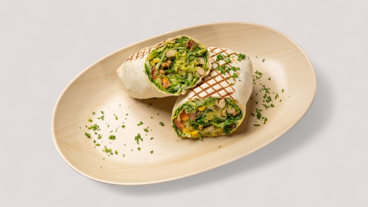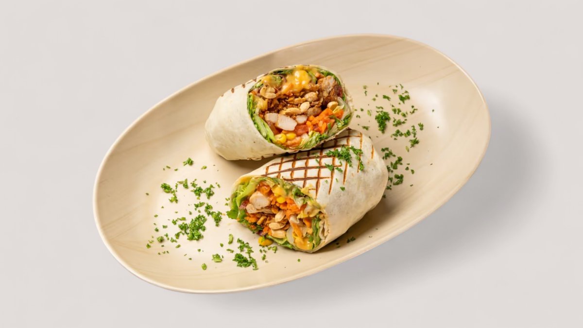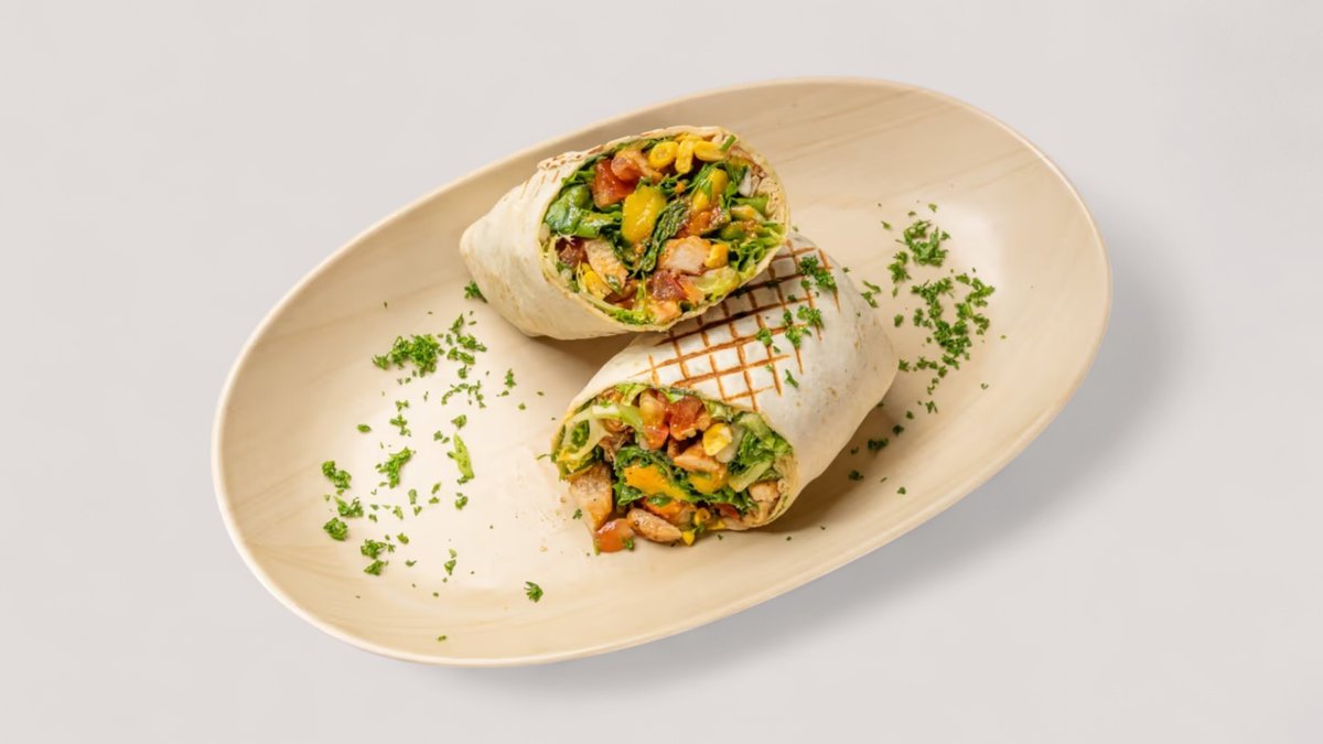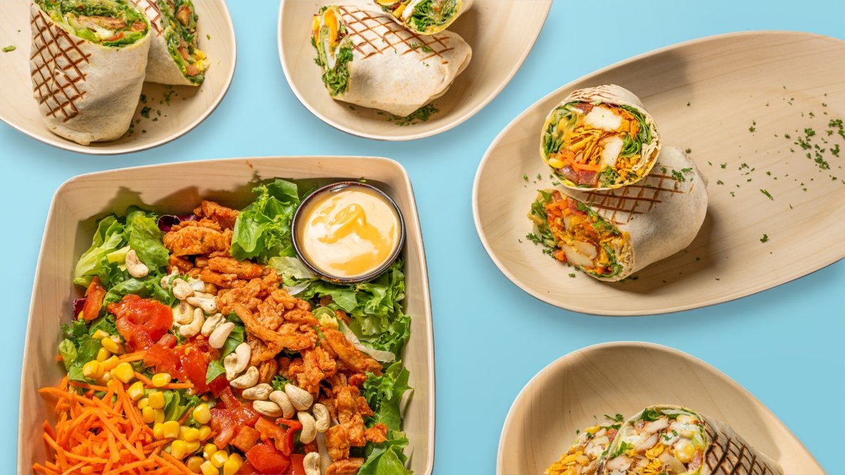alle Wraps werden mit einer Basis aus Salatmix, Tomaten und Mais imTortilla zubereitet, alle Burritos werden zusätzlich zur Wrap-Basis mit schwarzen Bohnen, Zitronenreis, Gouda und Sour Cream zubereitet