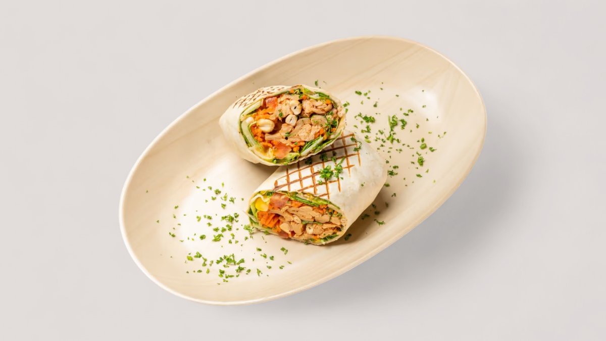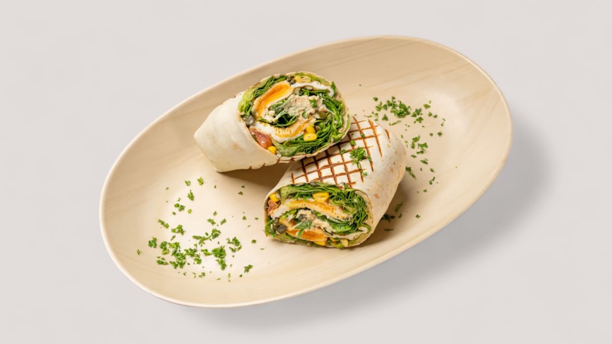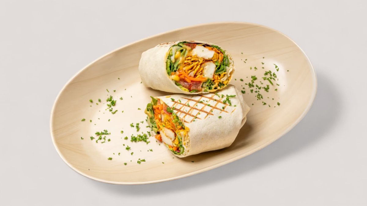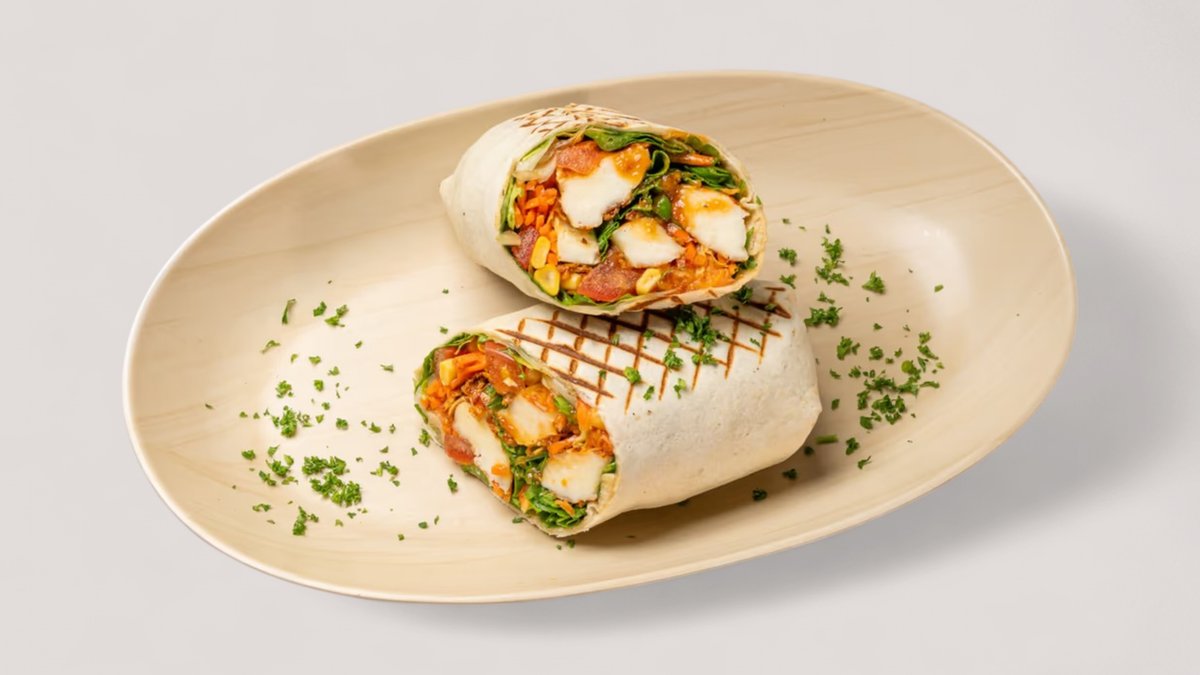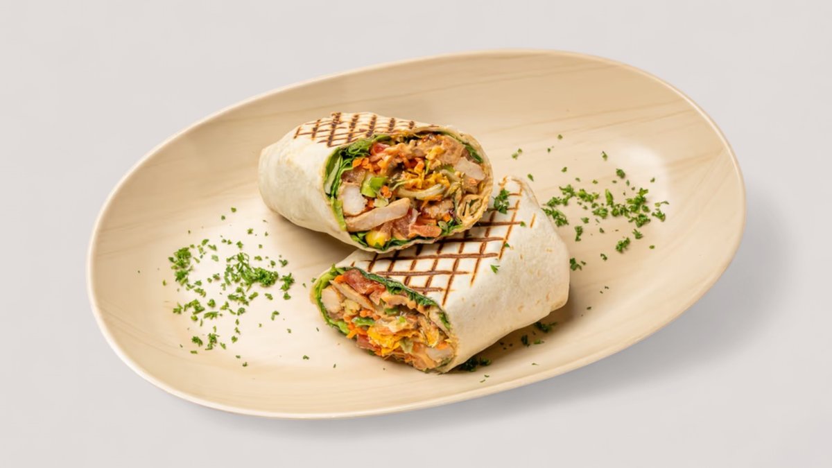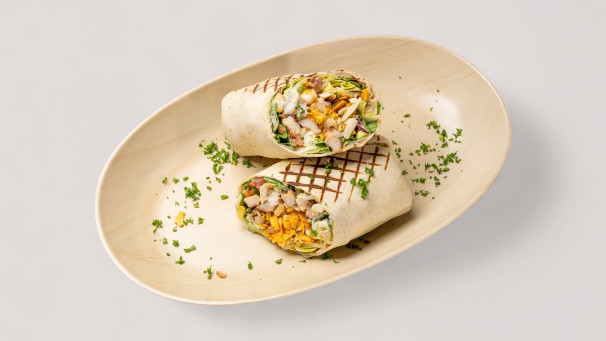 alle Wraps werden mit einer Basis aus Salatmix, Tomaten und Mais imTortilla zubereitet, alle Burritos werden zusätzlich zur Wrap-Basis mit schwarzen Bohnen, Zitronenreis, Gouda und Sour Cream zubereitet