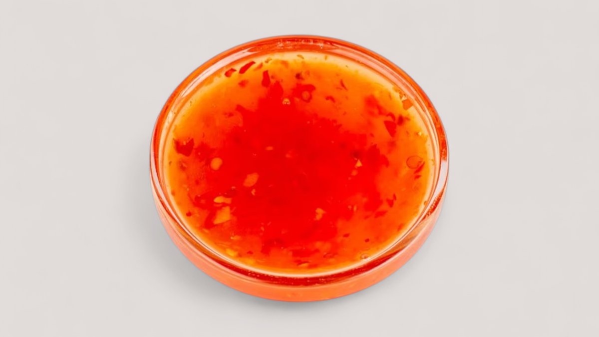 mit Mangostücken, Rucola und Tomate-Chili-Sauce