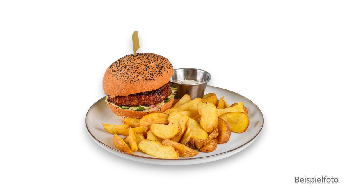 Vegan Galaxy Burger Menü mit Süßkartoffel-Pommes