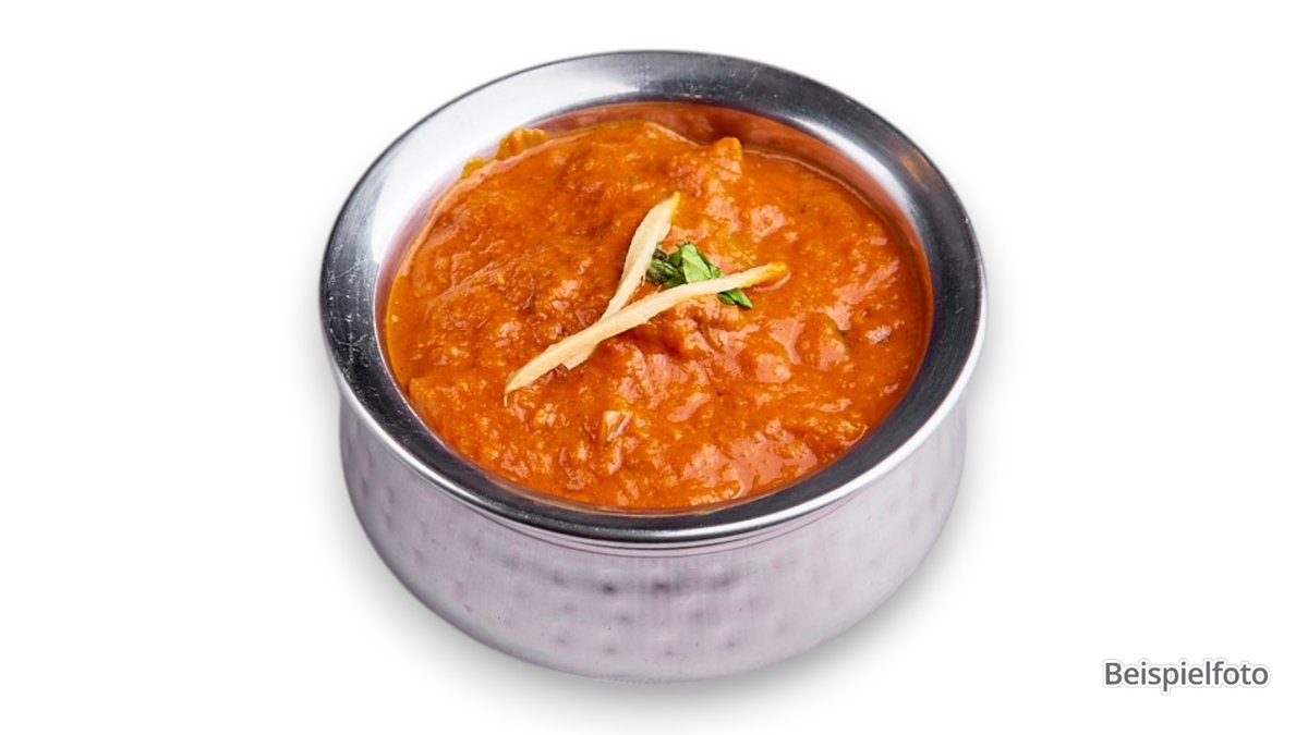 Hähnchenfleisch in Tomatensoße mit Kokos, Senfsamen und Curryblättern. (leicht scharf)