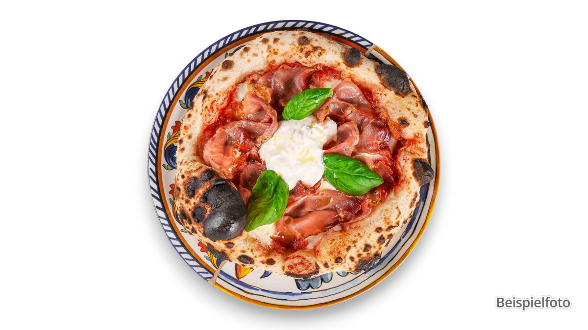 mit Käse, Sardellen, Cherrytomaten, Basilikum und Olivenöl, ohne Tomatensoße