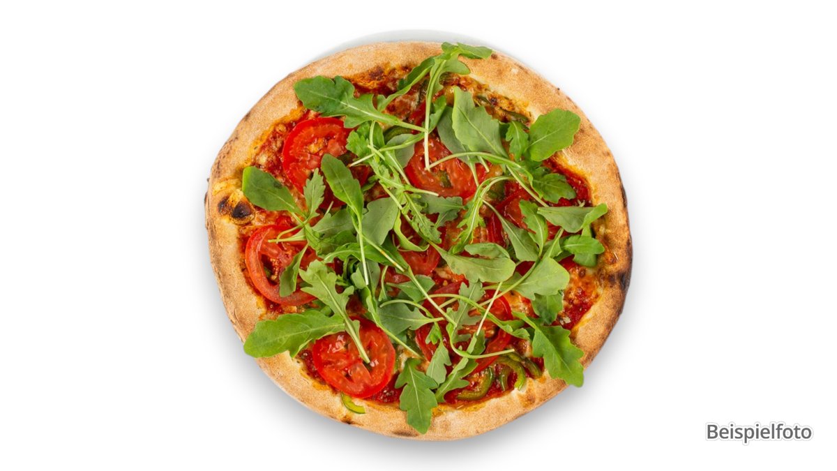 mit Tomatensoße, frischen Tomaten, Rucola und Büffelmozzarella