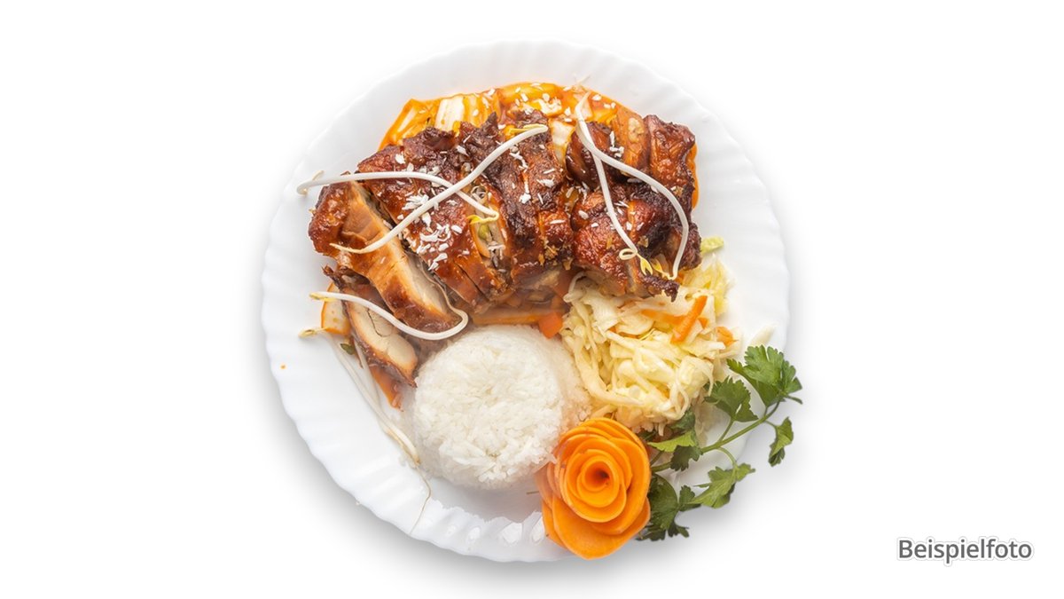mild Hühnerfleisch mit Mangomus, Kokosnuss und Sahnesoße