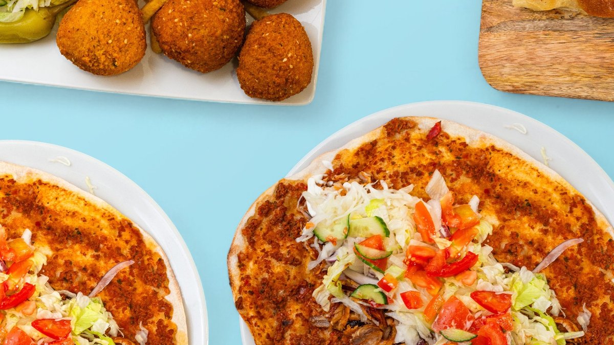 Türkische Pizza mit Falafel und Salat
