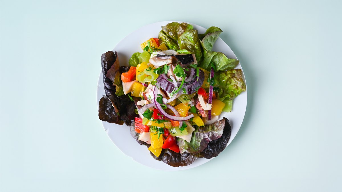 kalt eingelegter Oktopus an Paprika und Wildkräutersalat