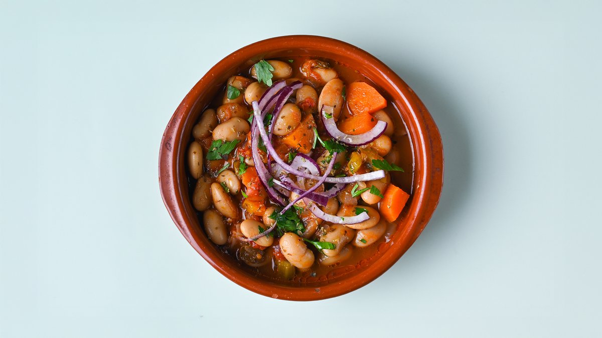 dicke Bohnen mit Sellerie und Möhren in Tomatensoße