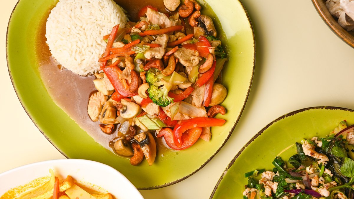 alle Gerichte werden mit einer Zutat deiner Wahl zubereitet und mit Duftreis serviert