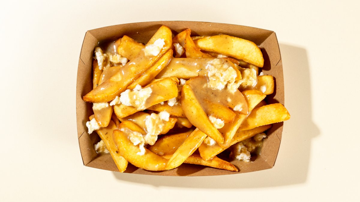 mit karamellisierten Zwiebeln, hausgemachter Burgersoße, Bacon Bits, Gouda und Kartoffelrösti