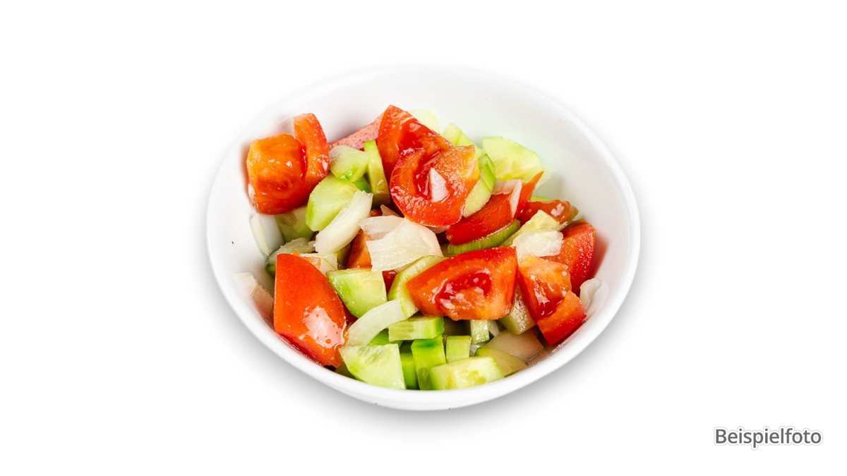 fein geschnittene Gurken, Tomaten und Zwiebeln mit Kräutern und Zitronen