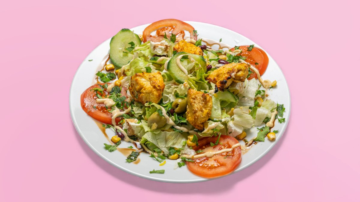 grüner Salat mit gegrilltem marinierten Hähnchen