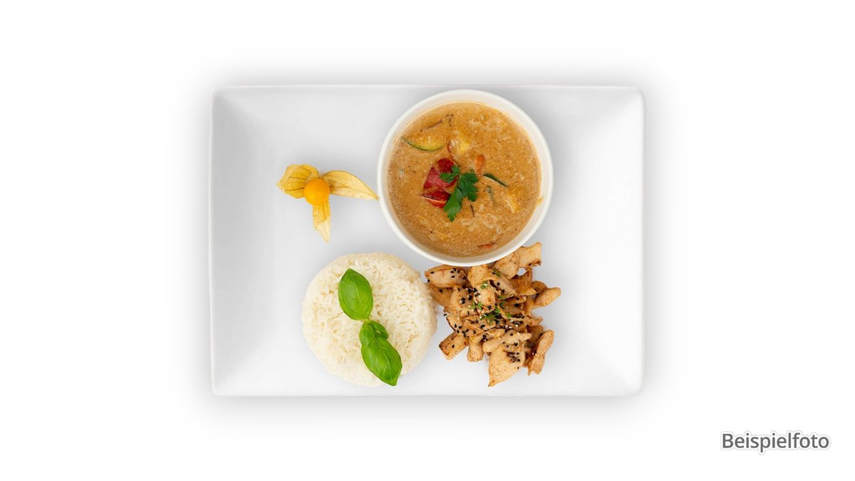 mit Erdnusssoße und einer Beilage deiner Wahl