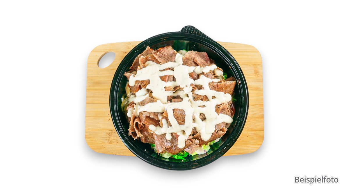 mit Dönerfleisch, Mais, Weichkäse und Soße