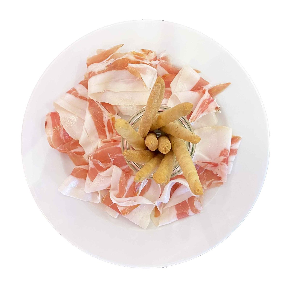 Würziger Schinken vom schwarzen Nebrodi-Schwein aus Sizilien (100g), frisch aufgeschnitten, Grissini (G)