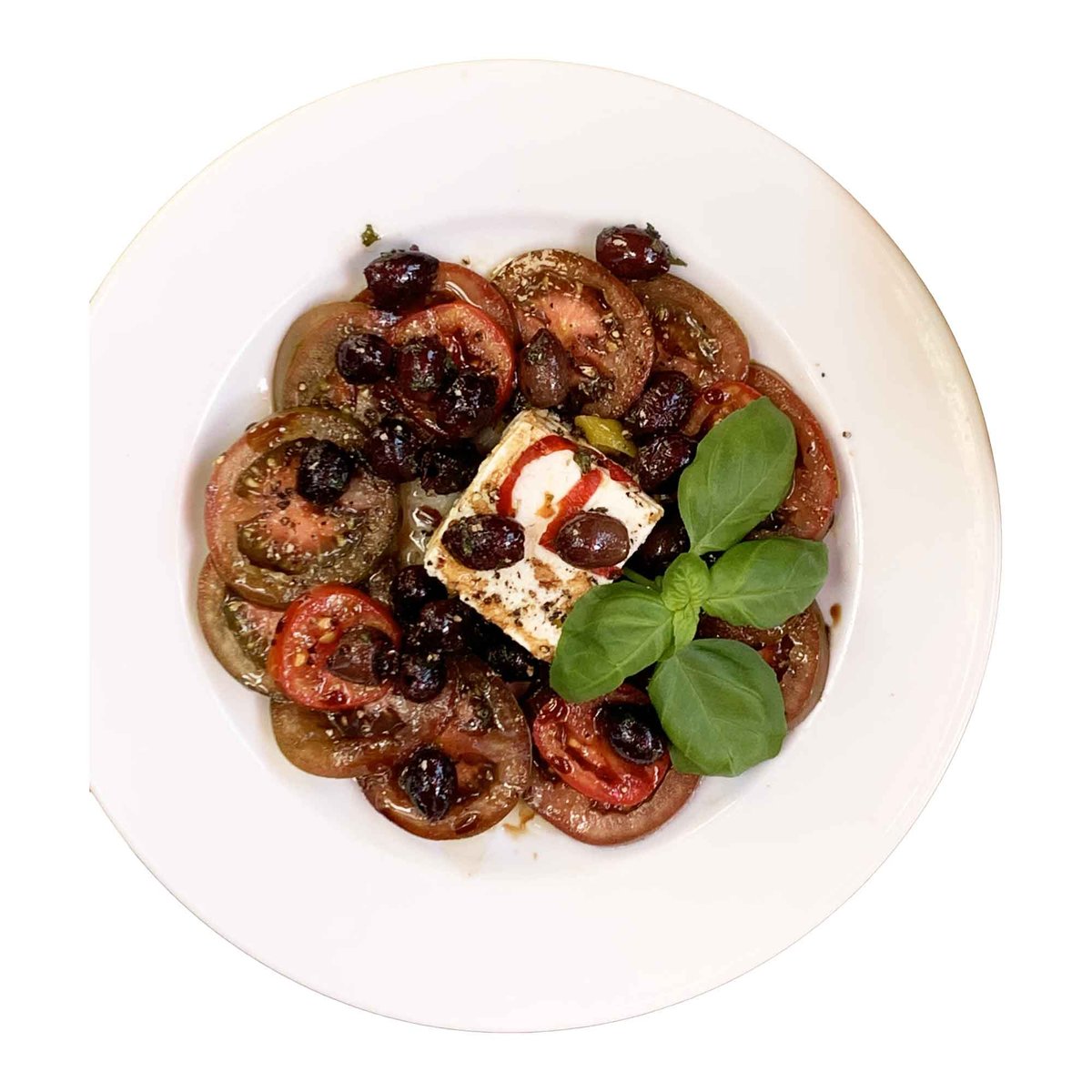 mit frischen Tomaten, Oliven und Schafskäse
