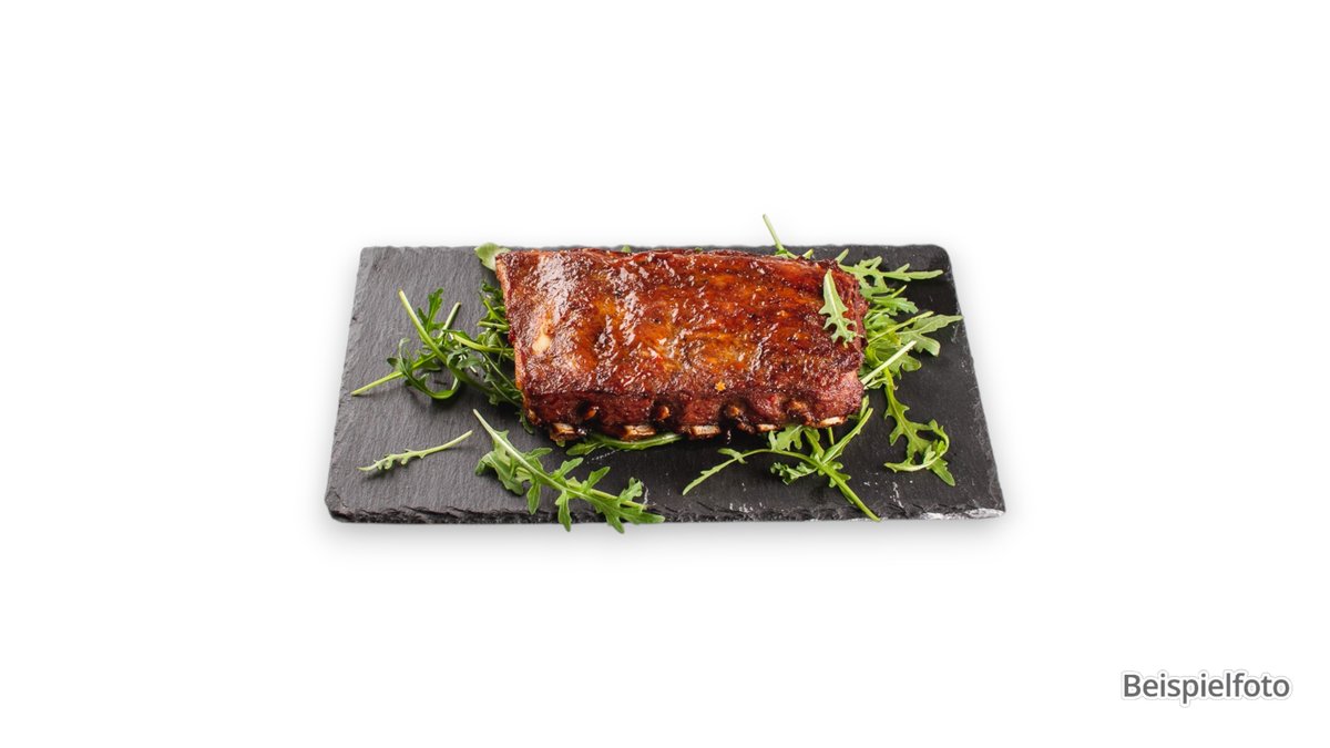 mit Barbecuesoße, Rindfleisch, Zwiebeln und Speck vom Schwein