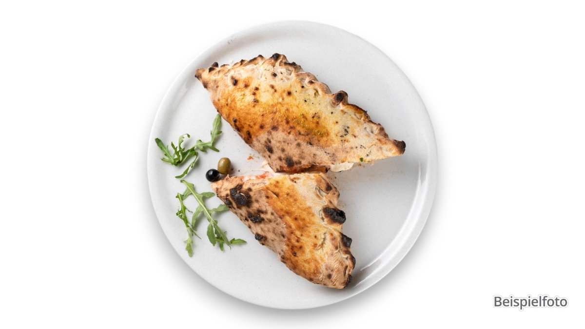 Calzone gefüllt mit Salami und Formfleisch-Vorderschinken vom Schwein, Champignons und Thunfisch